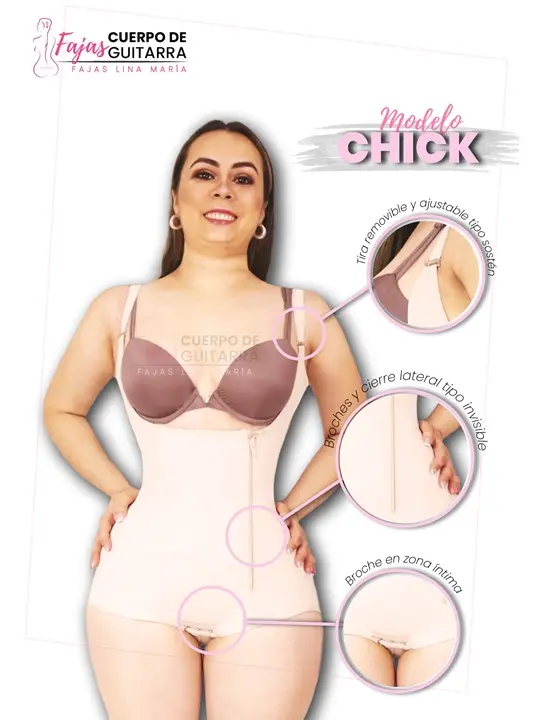 💗 Faja Chick: Moldeadora y reductora de alto impacto con 3 capas en el abdomen para una cintura más definida 💥. Realza glúteos 🍑 y busto 💕 de forma natural, mejora la postura y no tiene piernas, ideal para usar con tu ropa interior favorita 👙. Tirantes removibles. ¡Luce una figura estilizada con efecto Cuerpo de Guitarra® 🪕 desde el primer uso!